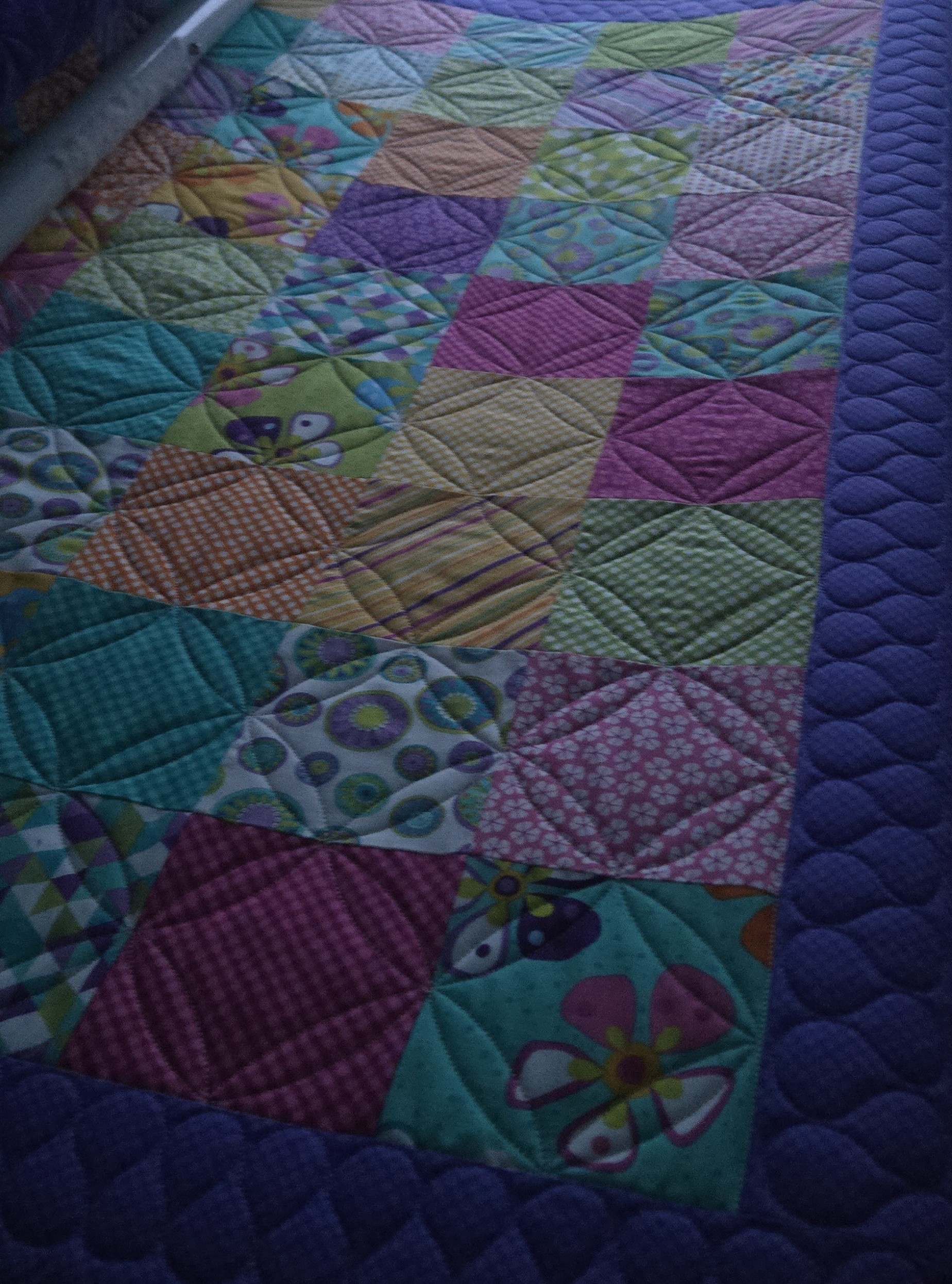 I love minky quilt backing. I know many people struggle with it. I don't really struggle, but I do make sure that I use my clamps with minimal tension, and I don't torque the material on the belly bar either.
